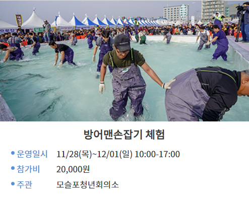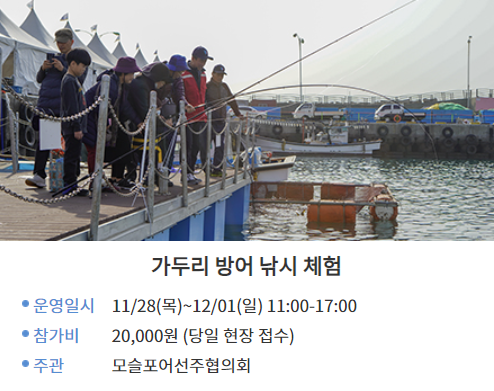 *방어축제 특설무대에서는 개막식을 비롯한 가요제, 공연, 경품추첨 등 다양한 행사가 펼쳐진다고 합니다.
